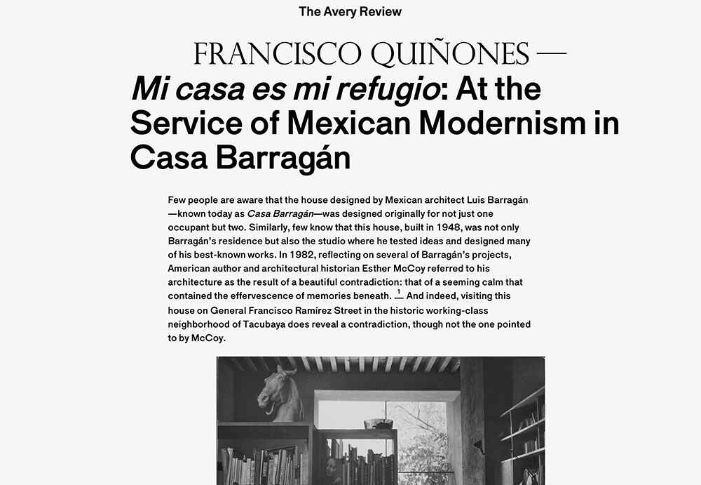Francisco Quiñones publica en la Avery Review de la Universidad de Columbia sobre el papel que jugó el trabajo doméstico en la formulación del Modernismo mexicano.