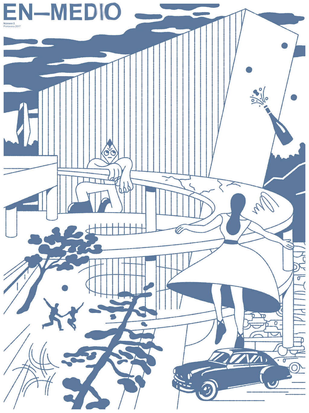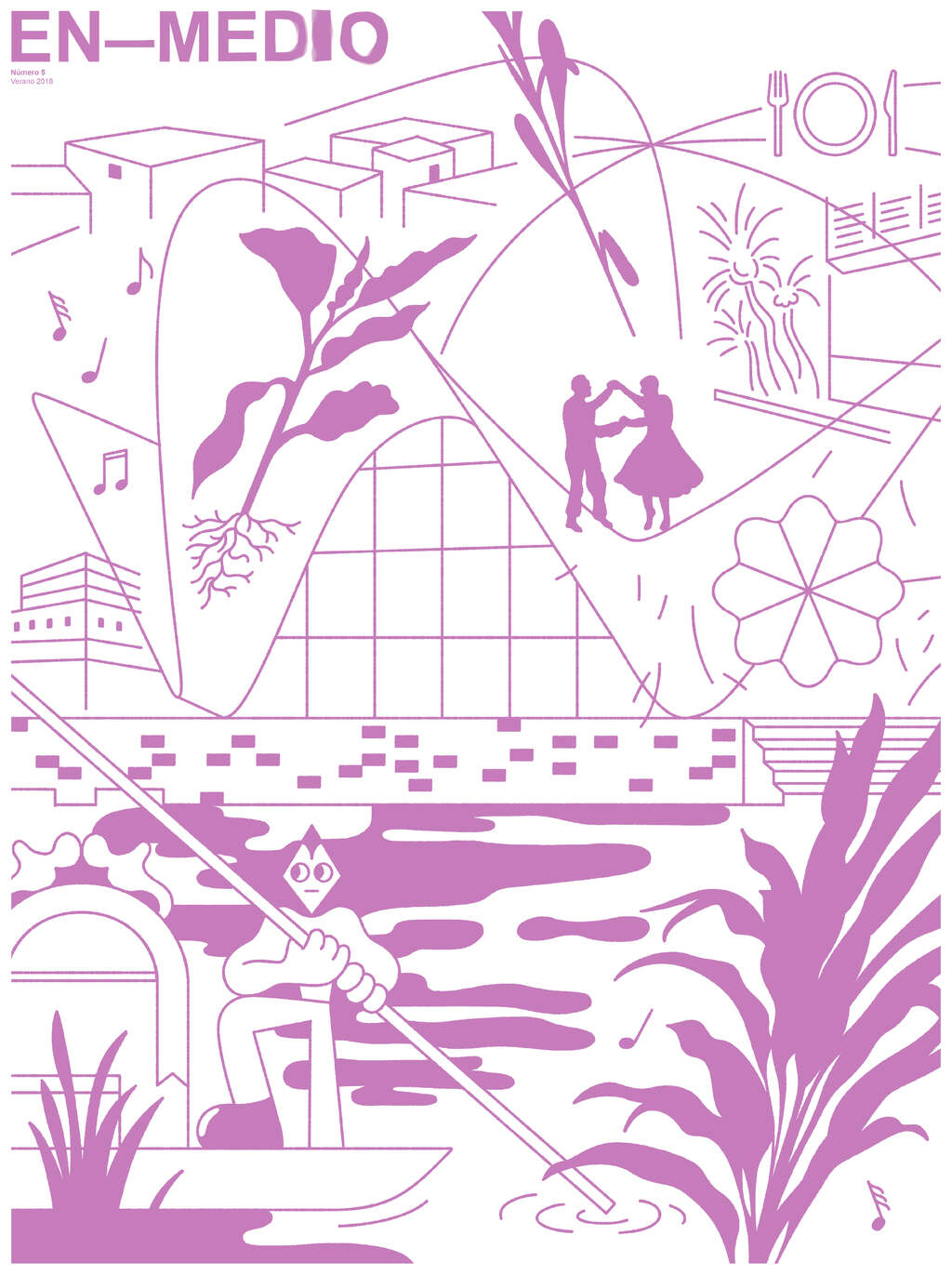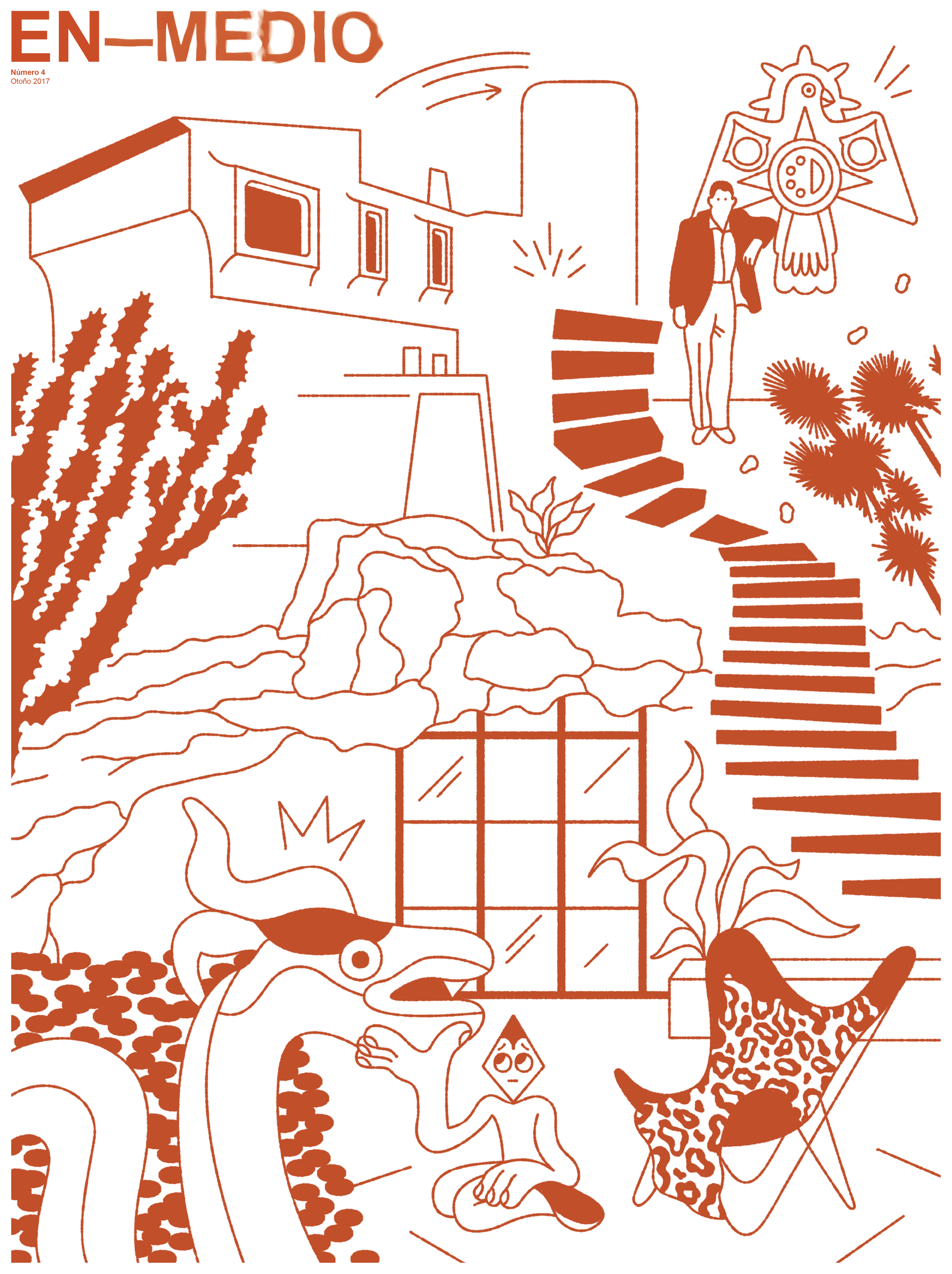 En-Medio es una serie de publicaciones producidas con el apoyo del Fondo Nacional para la Cultura y las Artes (FONCA). El proyecto trae a la luz el delicado estado del patrimonio arquitectónico del Movimiento Moderno en la Ciudad de México a través de la historia en desarrollo de seis obras maestras de la arquitectura de mediados del siglo XX. Los números individuales están dedicados a la Casa Ortega, el Súper Servicio Lomas, el Museo Experimental El Eco, la Casa Cueva, el Restaurante Los Manantiales y la Torre Insignia. A través de conversaciones con quienes han habitado y trabajado en alguna de las seis obras seleccionadas, historiadores que las han estudiado, activistas que han peleado por su conservación e iconoclastas que las preferirían destruidas, En-Medio se inserta entre las distintas narrativas arquitectónicas de la ciudad para preguntar sobre las posibilidades de su porvenir.
