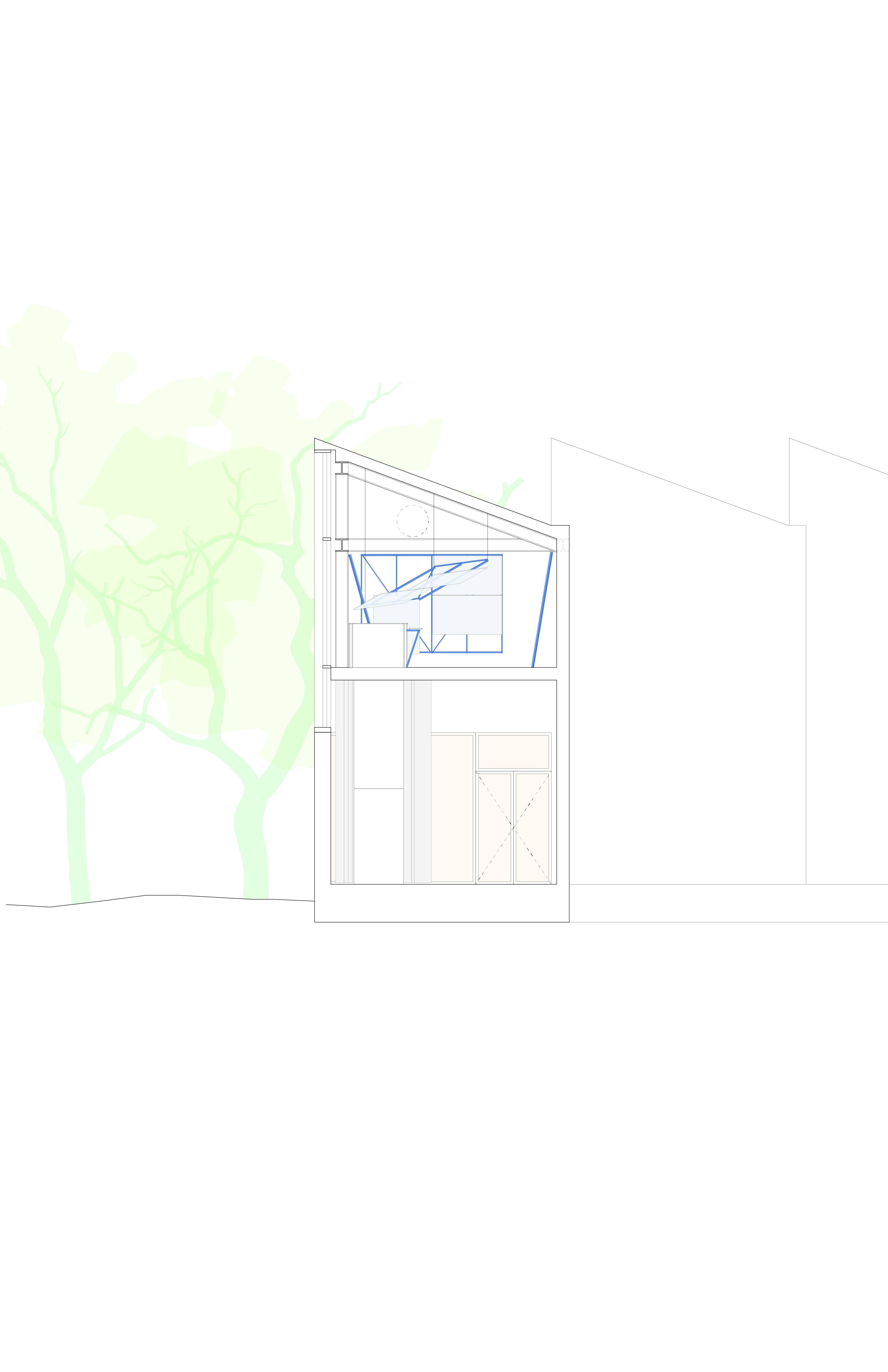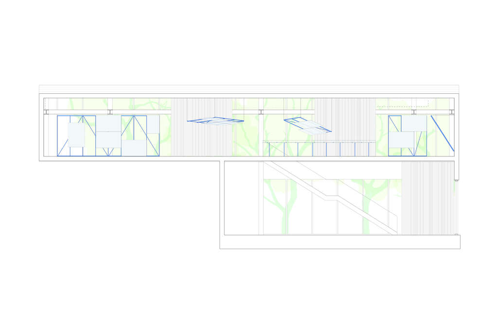 En la segunda planta se exhiben treinta imágenes a gran escala, que ofrecen una experiencia inmersiva, colgadas de marcos de aluminio hechos a la medida que se inclinan y se ladean en el espacio. Las fotografías de Baan se encuentran suspendidas en diversas posiciones de vuelo. Algunas se desprenden ligeramente de las paredes de la galería, mientras que otras flotan en el aire, invitando a los visitantes a adoptar nuevas posiciones y perspectivas para observarlas. Una mesa de exhibición lineal, fijada a lo largo de la barandilla de la escalera central, contiene una serie de imágenes de archivo del Departamento de Transporte de Texas. Las fotografías en blanco y negro, muchas de ellas tomadas por funcionarios anónimos, documentan la construcción de proyectos de infraestructura en Houston desde principios del siglo XX hasta la década de 1970.