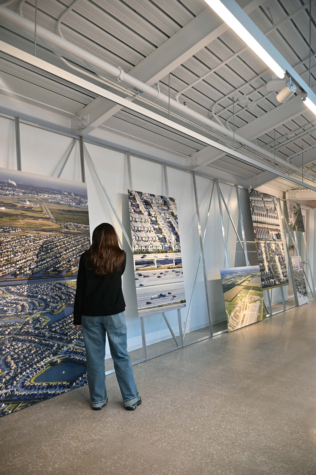 La exposición se distribuye en dos plantas de las galerías del Cannady Hall de la Escuela de Arquitectura de Rice. La galería en la primera planta presenta una selección de doscientas imágenes, impresas en formato A3 y colgadas de la pared con alfileres. Las fotografías se muestran como una red interconectada de espacios urbanos, tipologías y condiciones características de Houston, que podrían utilizarse para comprender mejor la ciudad contemporánea: desarrollos habitacionales y expansión urbana; vastos sistemas redes de infraestructurales; tanques de almacenamiento, chimeneas y contenedores de la industria; y las fachadas reflejantes de los rascacielos del centro de la ciudad.