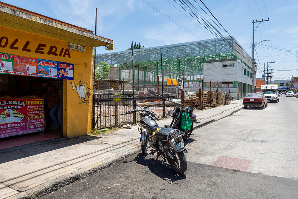 The Mercado Municipal Mariano Escobedo is a 1,690 square-meter (18,230 square-foot) public market located in the historic center of Tultitlán, two blocks away from the main square of the municipality. Prior to construction, an adapted warehouse building occupied the site and served as a local market for several decades. In 2019, local authorities demolished the structure due health risks related to a lack of maintenance and structural instability, poor ventilation, and overcrowding.