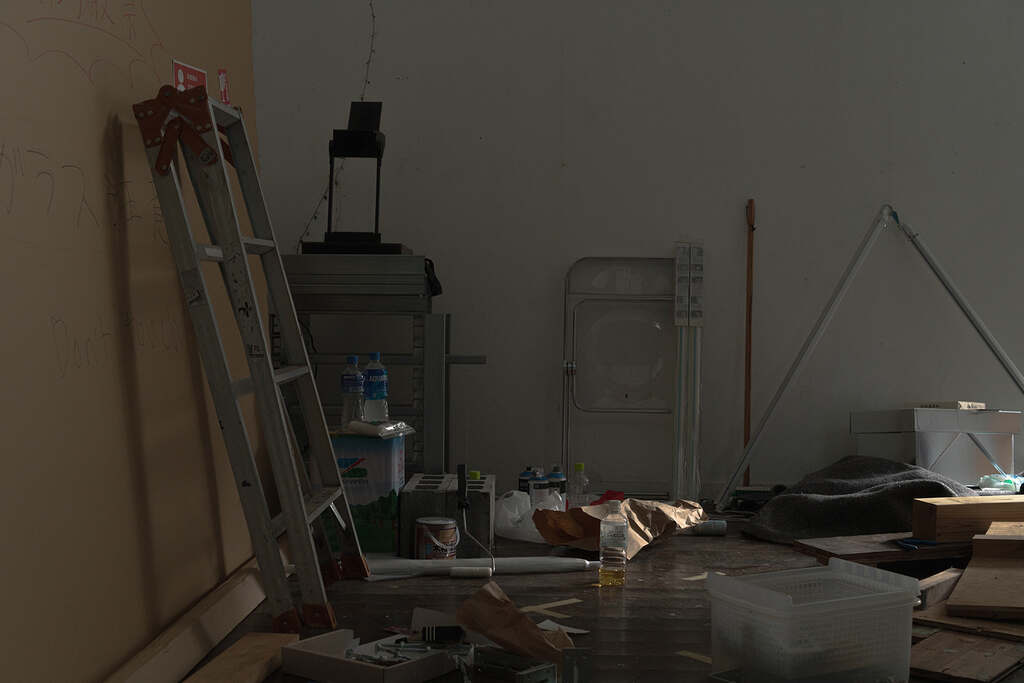My Robot is a mobile support structure. Operating as part furniture and part infrastructure, the installation acts as a literal and conceptual extension of the Shinjuku White House service spaces. Built out of stacked steel profiles and stored in the on-site closet while not in use, My Robot can be rolled out at specific moments in time: to act as a step ladder during installations in the main gallery space; to provide an additional display surface or pedestal when the existing wall space is insufficient; or to extend public programming onto the side street, where it might function as a beacon, bar table, or DJ booth.